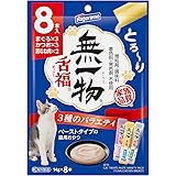 5% オフ素材と水・米粉だけで仕上げたペーストタイプの無一物です まぐろ/かつおは塩分が低い原料を使用しています 増粘剤・調味料・着色料・発色剤不使用です 原産国:インドネシア まぐろ3本・かつお3本・鶏むね肉2本が入った1袋8本入りです
