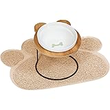PetStyle えさ皿 ランチョンマット 肉球型 セット 猫 犬 食器 えさ 皿 餌入れ フードボウル ペット ご飯皿 水飲み マット 食べやすい 傾斜 餌皿 エサ入れ 滑り止め 陶器 アイアンバンブースタンドシングル (シングル/ほね柄) (ベージュ)