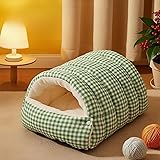 GIIPET 猫 犬 ベッド ハウス 半密閉型 ペットハウス 冬用 保温 洗える 取り外し可能 クッション 超柔短毛 フワフワ PP綿 高弾力 ドーム型 2WAY 開閉式 折りたたみ式 室内 小型犬 猫兼用 おしゃれ 暖かい 65*40*28cm (グリーン)